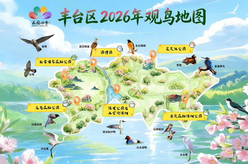 在打造全域赏花景不雅的同期,比年来丰台区捏续深耕生物各类性保护。2026年,丰台区升级打造“六园和鸣”不雅鸟走廊,串联南苑丛林湿地公园、莲花池公园、北京园博园、北宫国度丛林公园、云岗丛林公园和绿堤野外公园六大中枢不雅鸟胜地,让市民在赏花之余,再会百鸟都飞的生态好意思景。