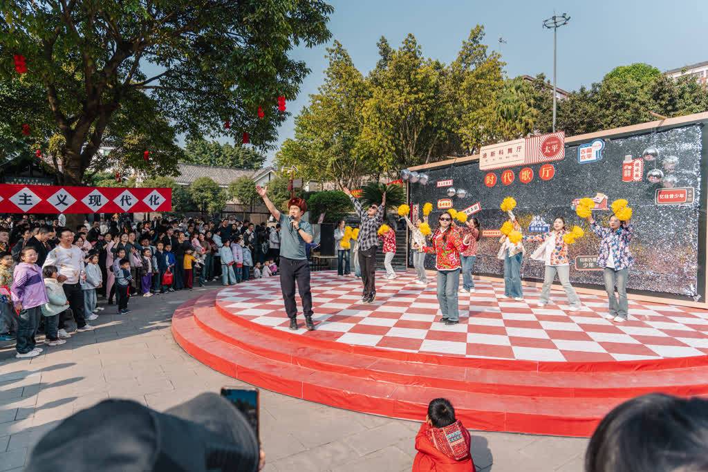 春节时辰,走进太平古镇,处处欢歌笑语,怀旧主题活动精彩纷呈。摆设馆广场上,港风师法秀惊艳亮相,川巨变脸绝技引得阵阵惊呼;李家绣楼里,相沿婚恋现场复刻放纵时光;一旁的“嗦面大赛”热气腾腾,尽显东谈主间火食气。五路“财神”巡游送福,相沿舞队穿梭古巷,锣饱读声与甘心声在赤水河边颤动,将新春喜庆氛围推向热潮。