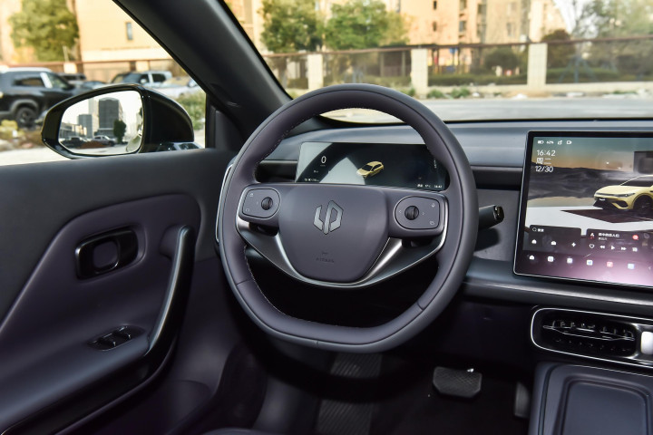坐进车内,内饰的质感也超出了我的预期。中控台、门板、座椅这些常常摸到的场地,大面积用的王人是仿麂皮超纤绒,见识盘和扶手区域还有真Nappa皮,手感特地细腻,摸上去完全不像这个价位该有的水准。我之前试过多台10万级纯电,内饰大多是硬塑料,摸起来生硬还容易有异响,Lafa5这点作念得很良心。更攻击的是,新车异味很淡,销售说通过了OEKO-TEX环保认证,我试驾的时候稀奇关了车窗开了半小时,也没以为头晕恶心,家里有小孩或者对气息敏锐的一又友,这点应该会很介怀。车内配色也很年青,有深紫色和两种灰色可选,比传统家用车的黑灰单调配色强多了,再加上256色氛围灯集合中控和门板,晚上开车时迷惑翻毛皮材质,赛博一又克感十足,并且氛围灯还能随着音乐节律变色,开车的时候多了点乐趣。