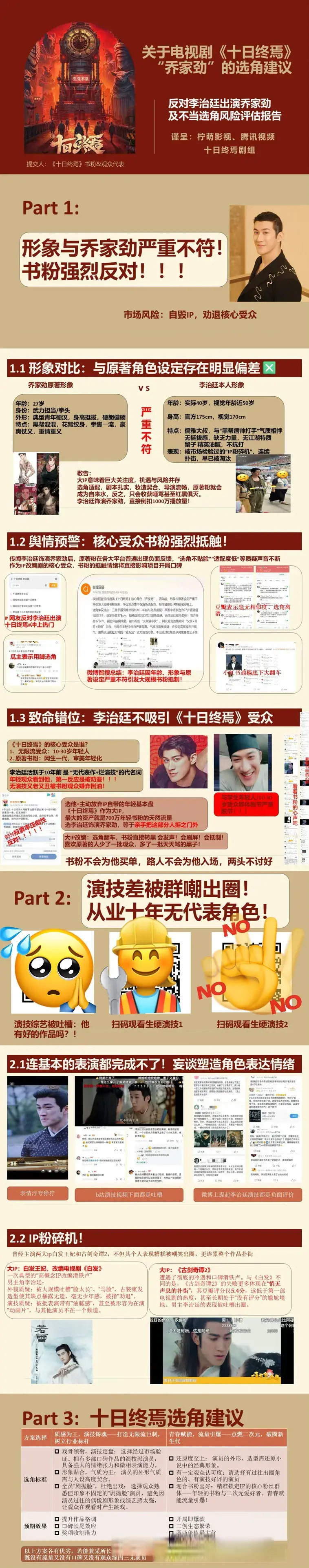 由于演义《旬日终焉》的顶级IP效应,加之超东说念主气演员肖战的顶级影响力,使得剧版《旬日终焉》大男主王人夏以外的副角演员气势也激发极大眷注度。在网传的副角东说念主选中,有些是判辨的炒作,有些是蹭流量。详细多个认证账号音书,演义中最穷苦的副角之一,亦然时刻在王人夏身边的铁哥们乔家劲,或有李治廷出演,激发《旬日终焉》书粉及剧版潜在不雅众的动怒。有书粉还专诚作念了PPT敷陈这个选角的不适配。