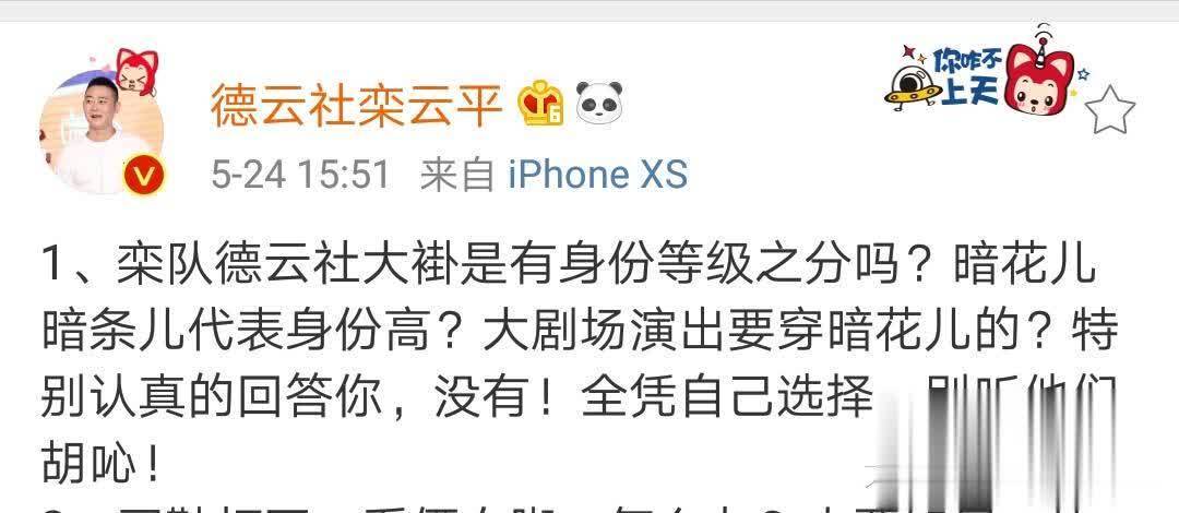 前段本领,栾云平不是在网上科普了德云社大褂不分等第的事吗?栾云平用了“绝顶讲求”四个字来修起网友,大褂真的不分等第,全凭我方遴荐!